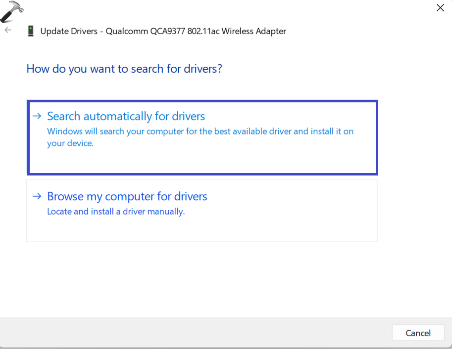 3. 将出现一个对话框。选择“自动搜索驱动程序“ 选项。