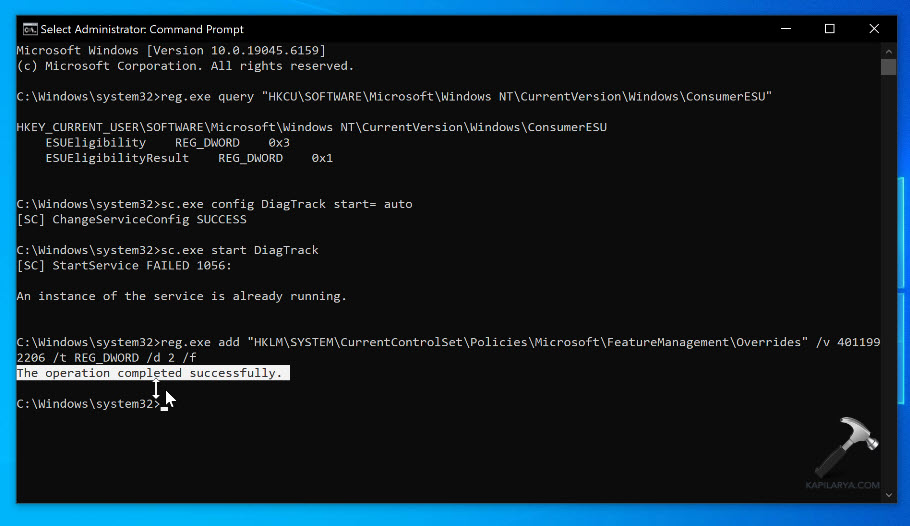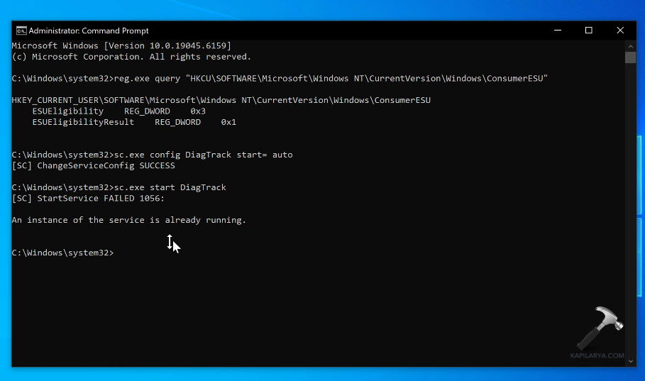 reg.exe query "HKCUSOFTWAREMicrosoftWindows NTCurrentVersionWindowsConsumerESU"