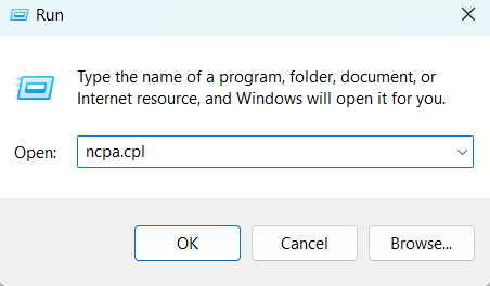 - 然后输入 ncpa.cpl 命令并点击进入。