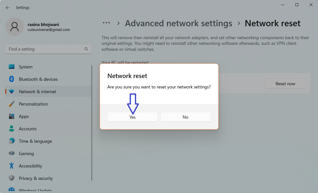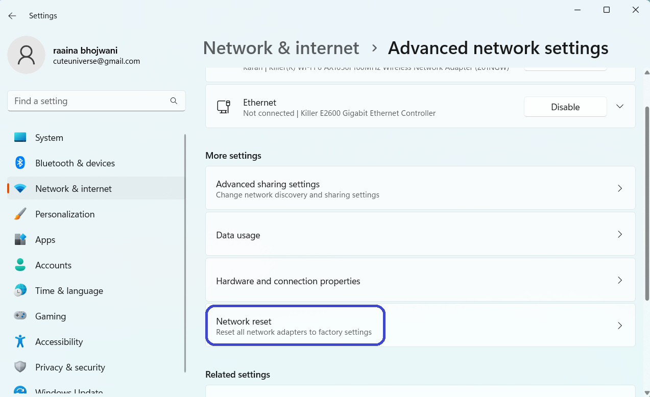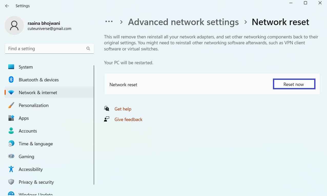 修复 4:如果 Windows 11 以太网无法工作,请重置网络设置