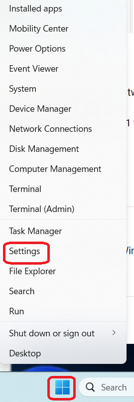 1. 右键单击 Windows 图标并转到设置。