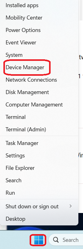 1. 右键单击 Windows,然后选择“设备管理器”。