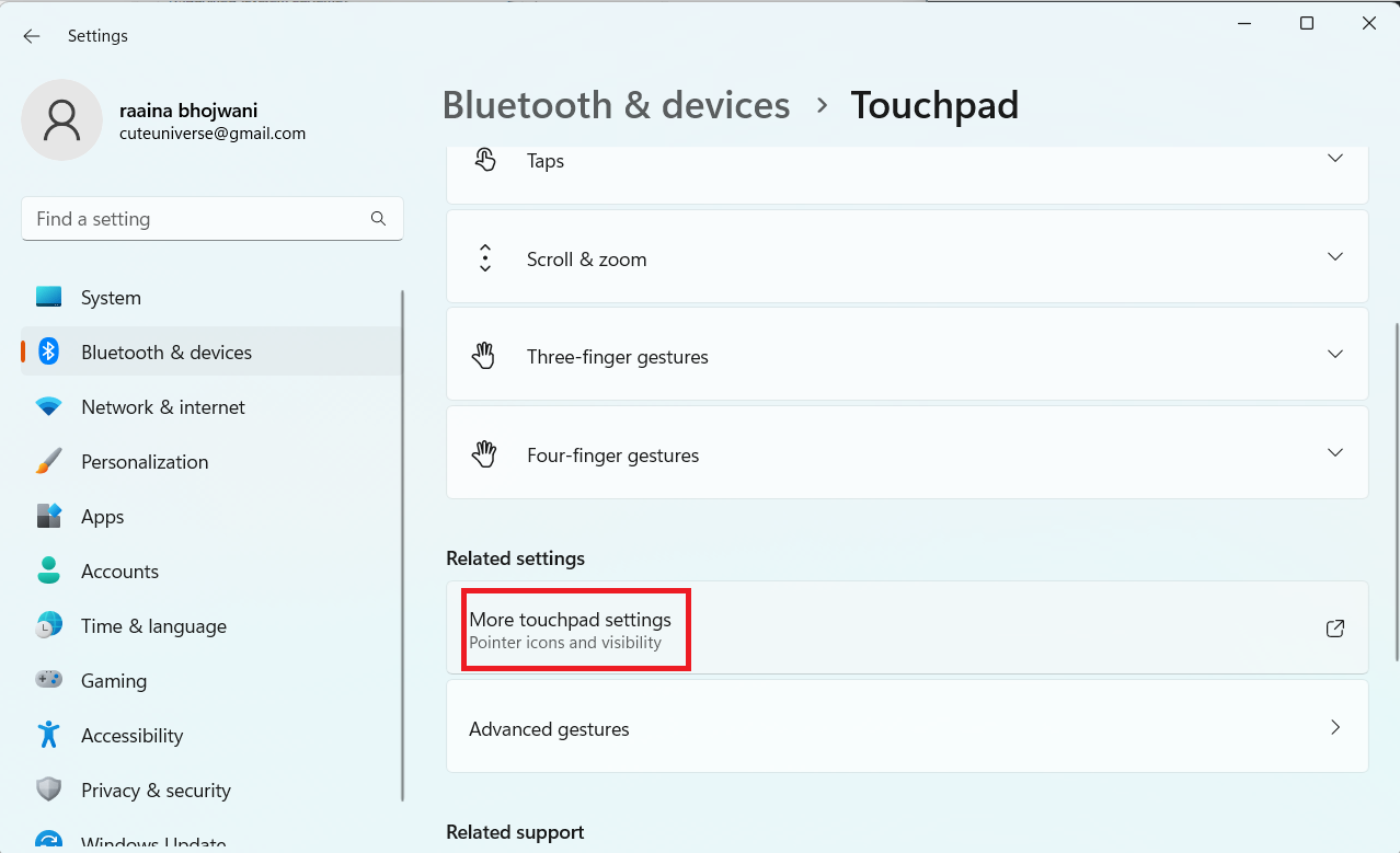 3. 单击“更多触摸板设置”选项。