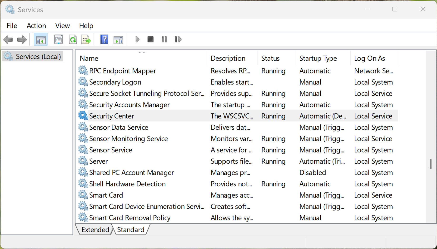 必须运行多个服务才能使 Windows 安全性正常工作。