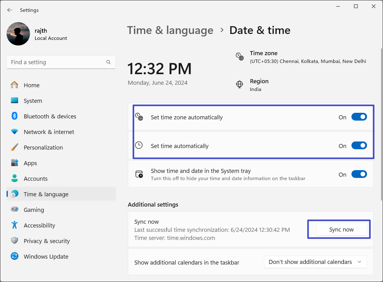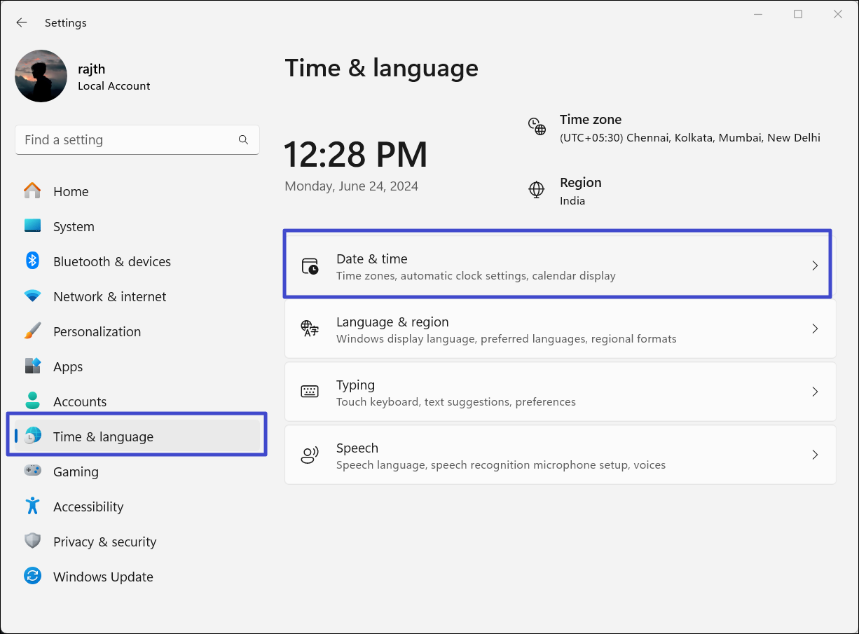 1. 打开 Windows 设置应用程序并选择“时间和语言”。