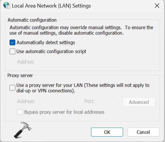 5. 单击好的, 然后申请,然后按好的在 Internet 属性中启用自动检测设置。