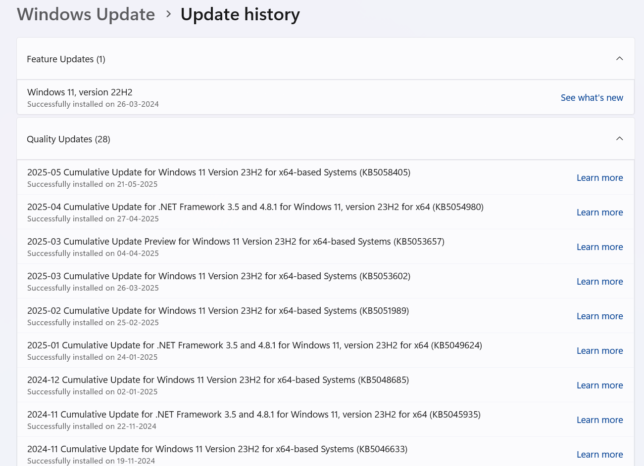 步骤3:从列表中,记下无法安装并出现错误代码的 KB 编号。