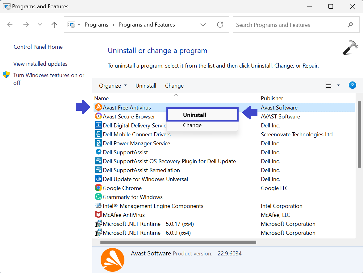 2. 现在,右键单击防病毒软件并选择“卸载”。