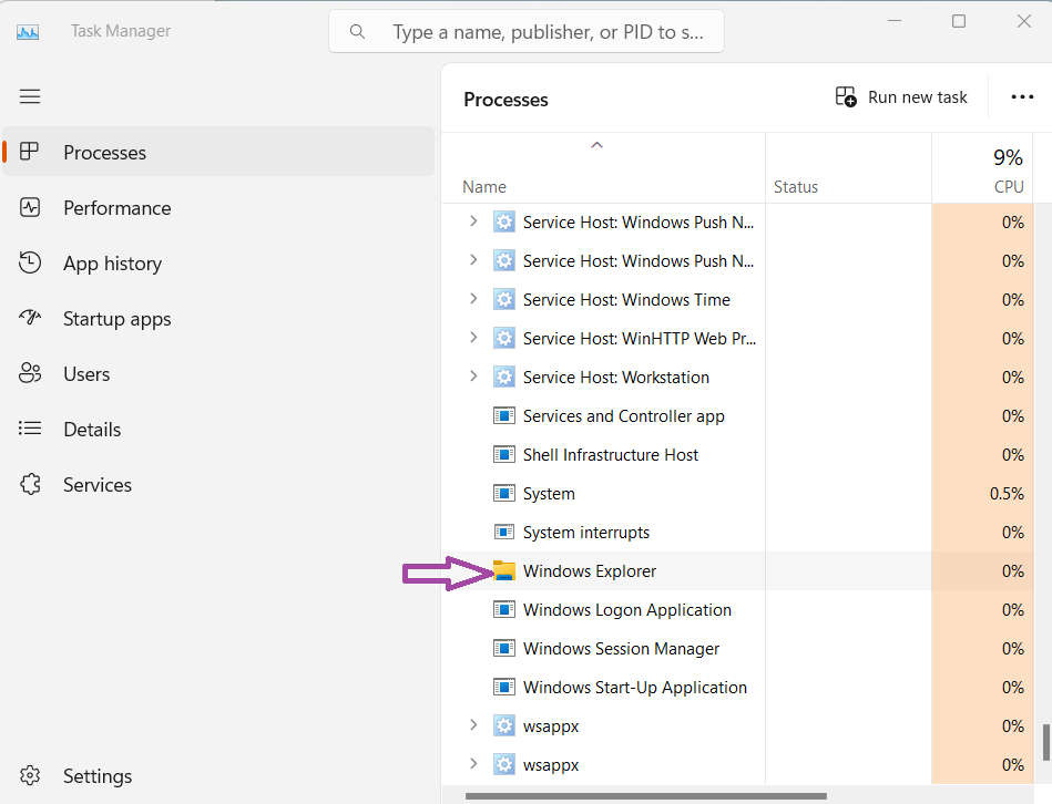 2.接下来右键单击Windows资源管理器并选择结束任务。