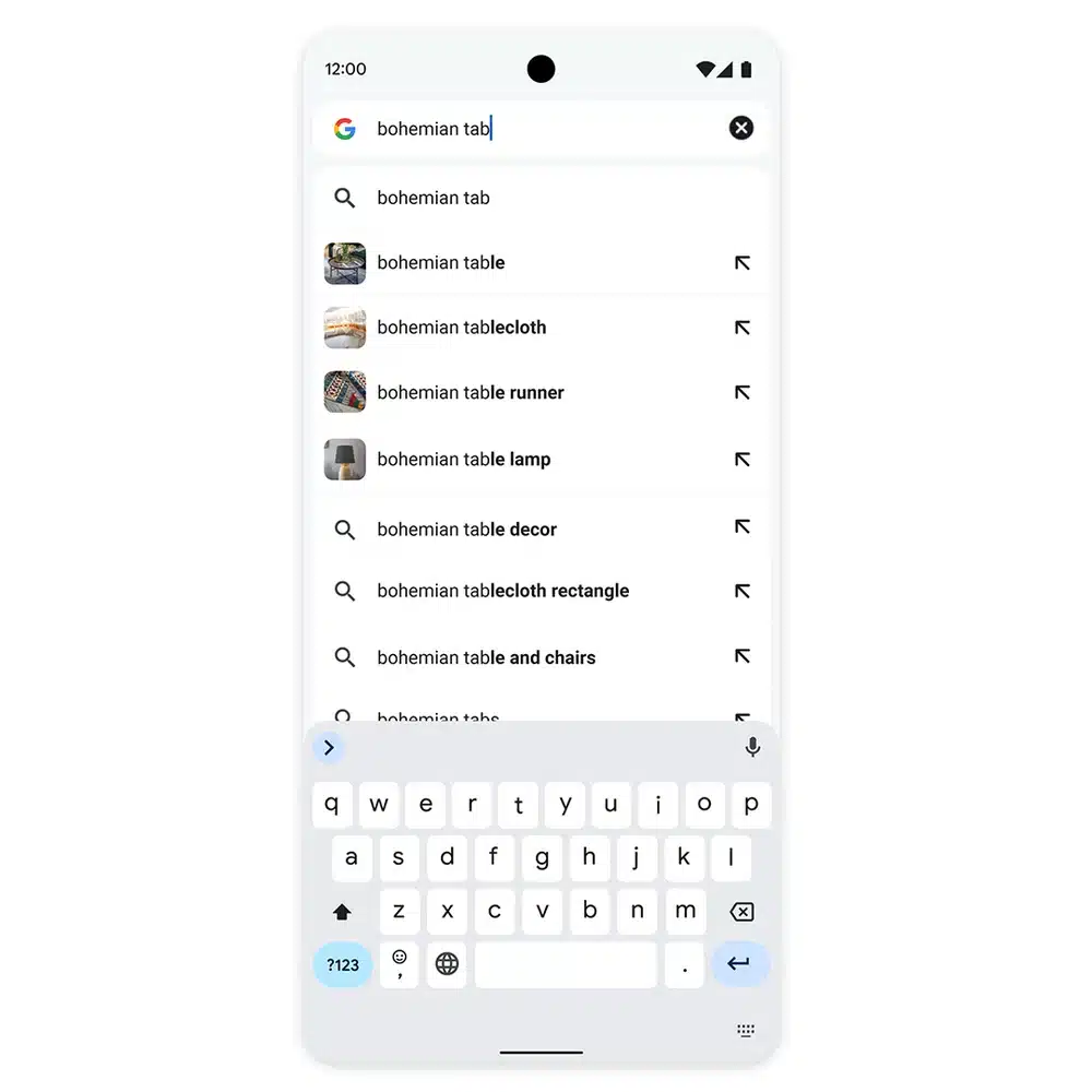 以前,当您输入搜索词时,Google Chrome 仅在地址栏中显示特定产品的图像。然而,在 Android 和 iOS 设备上,Chrome 现在将此功能扩展到更广泛的搜索词。例如,如果您输入“波西米亚桌子”,而不需要特定的产品名称,Chrome 将为您提供与波西米亚风格桌子相关的各种具有视觉吸引力的选项,可能会激发您的搜索新想法。