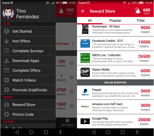 Grabpoints mod apk 遵循其他应用程序相同风格的路线,因此原创性不是他的强项。我们将赢得积分下载并尝试其他应用程序、观看视频、调查、邀请朋友等等。来吧,照常营业。奖励目录相当大,在其中我们发现我们更喜欢通过 PayPal 进行的所有付款。