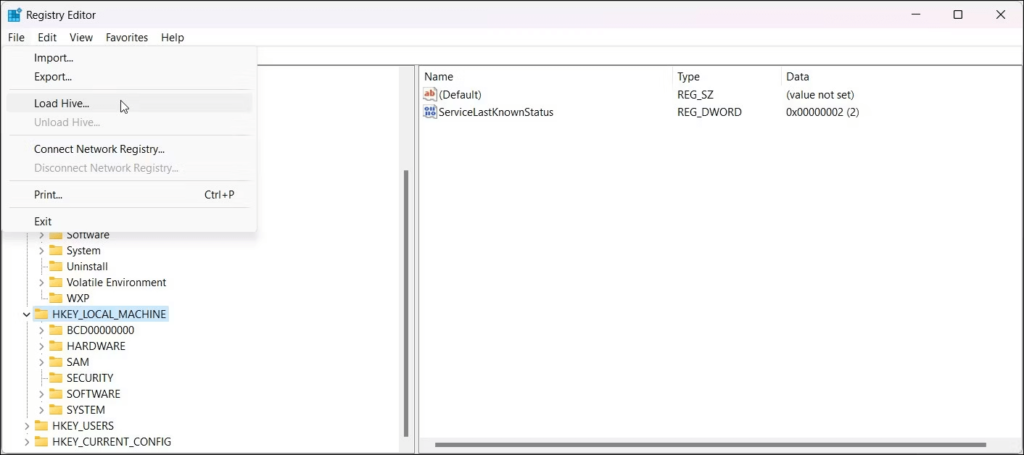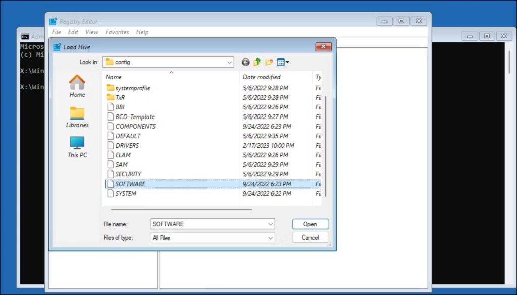 如果您看到“加载 Hive,访问被拒绝”问题,则意味着注册表编辑器仍在使用该文件。您必须使用命令提示符卸载注册表配置单元才能修复此问题。