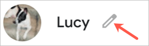 - 将光标悬停在照片页面上他们的姓名上,然后选择铅笔出现的图标。