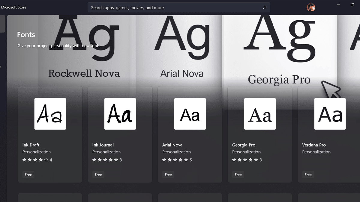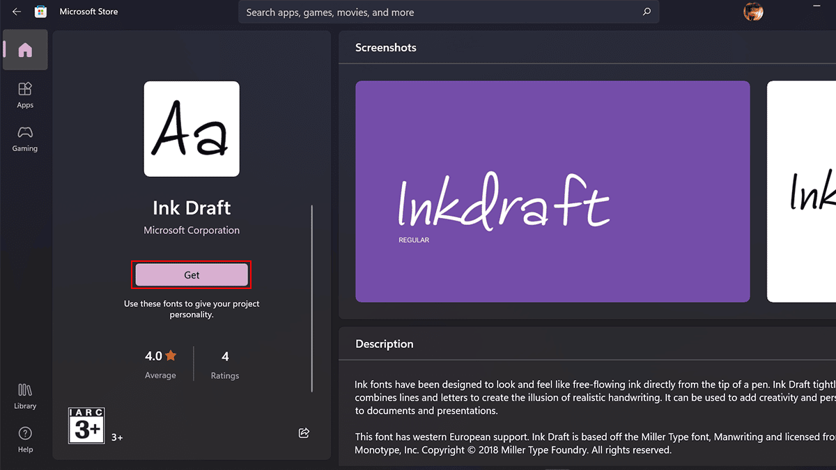 - 单击在 Microsoft Store 中获取更多字体选项。