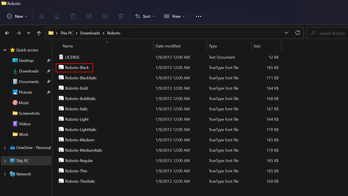 - 打开文件浏览器> 浏览到包含字体文件的文件夹。