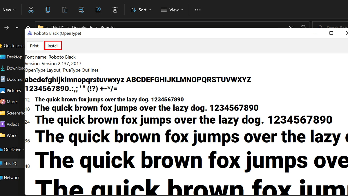 - 单击安装按钮。 *快速提示:您还可以设置应用程序字体来快速安装字体。