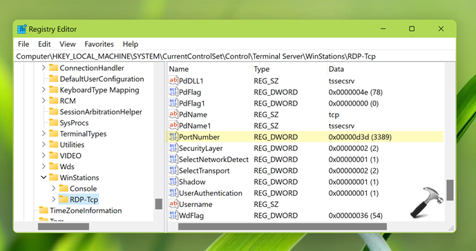 HKEY_LOCAL_MACHINESystemCurrentControlSetControlTerminal ServerWinStationsRDP-Tcp