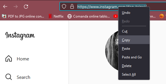 4. 您可以将复制的 URL 粘贴到 DM、Instagram 帖子或 Youtube 个人资料中的任意位置。使用键盘快捷键CTRL + V粘贴,或右键单击要共享的位置,然后找到粘贴选项。