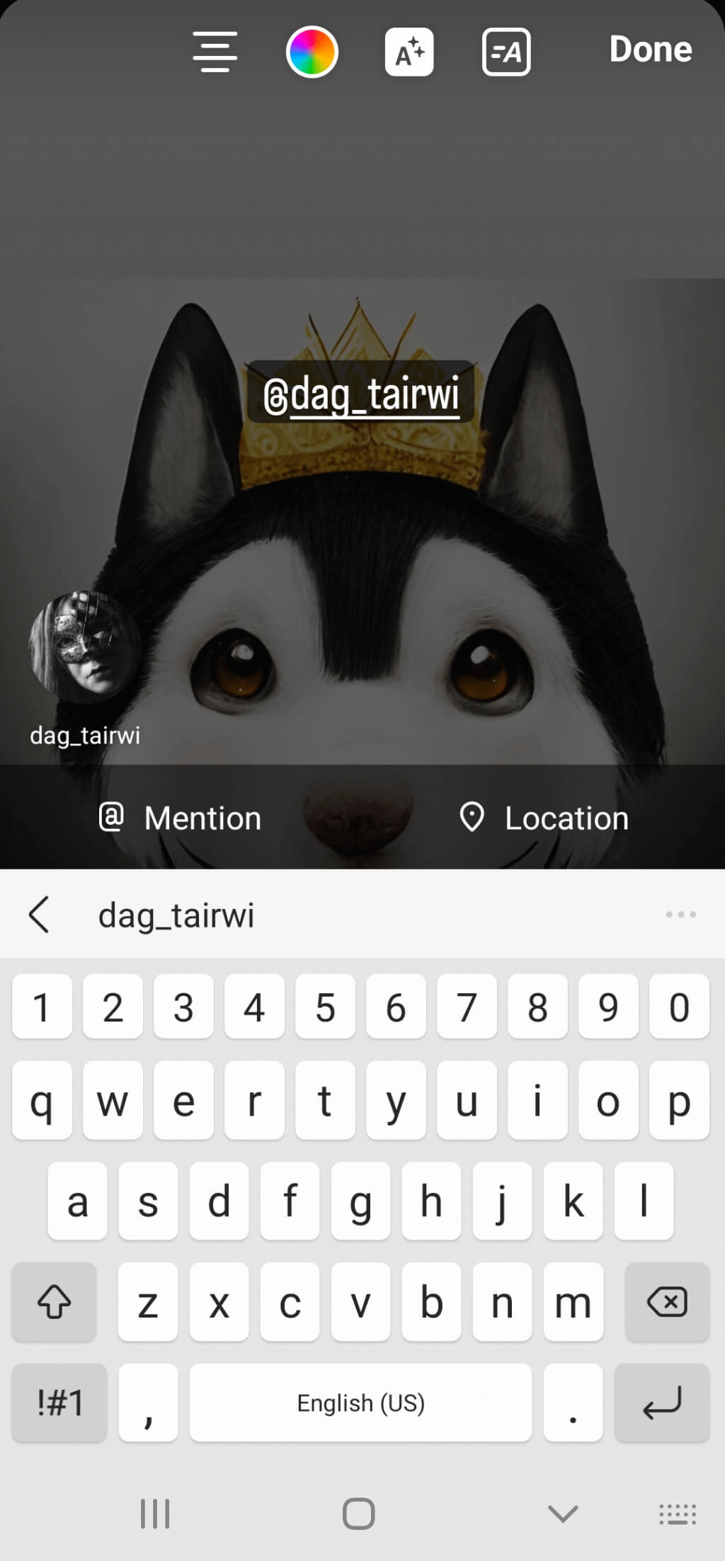 如果您想通过分享某人的个人资料链接到您的 Instagram 故事来宣传某人,您可以使用提及功能来实现。请按照下列步骤操作:
