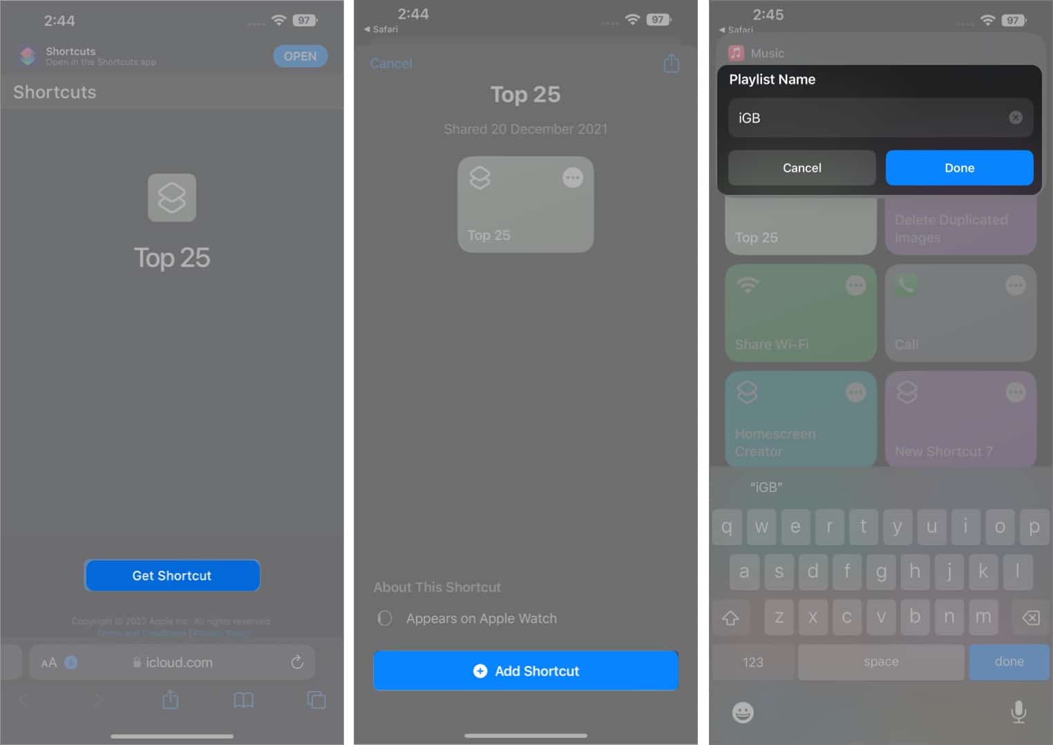 不幸的是,音乐应用程序不提供在移动设备上创建智能播放列表的方法。不过,有一种方法可以使用“快捷方式”应用程序创建智能播放列表。随着“前 25 名”快捷方式我们在这里提到过,您将能够提取 25 首歌曲。大声喊出罗纳德·朗格维尔德创建这个非常有用的快捷方式!