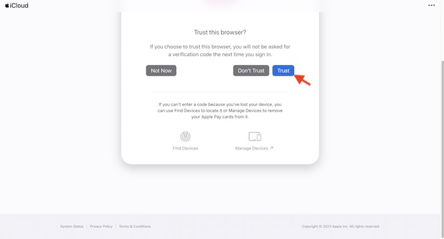 5.您还将被要求信任浏览器。如果您不想一次又一次输入验证码,请务必单击“信任”。