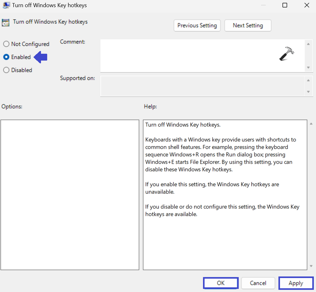 方法 1:使用本地组策略编辑器在 Windows 11 中禁用键盘快捷键