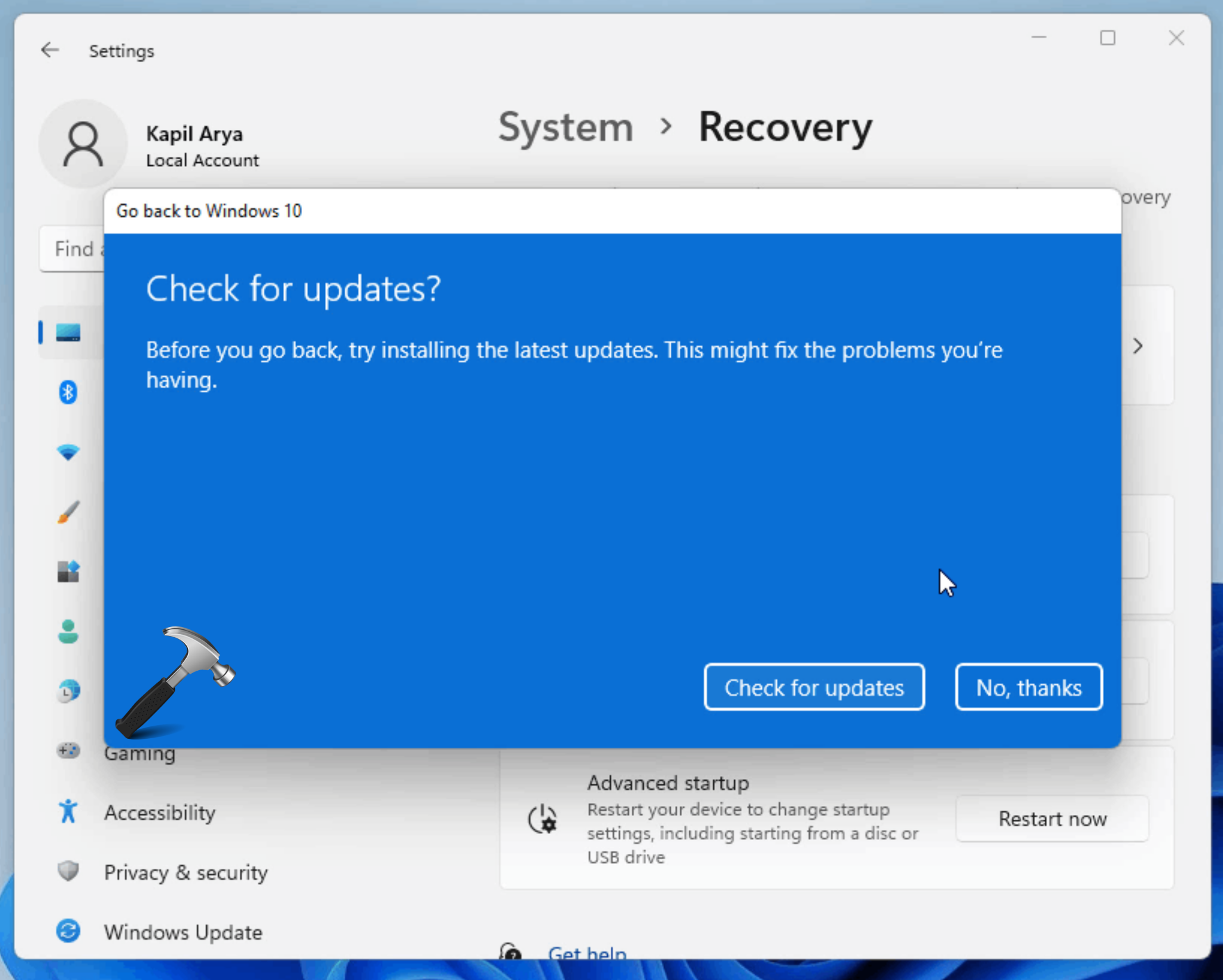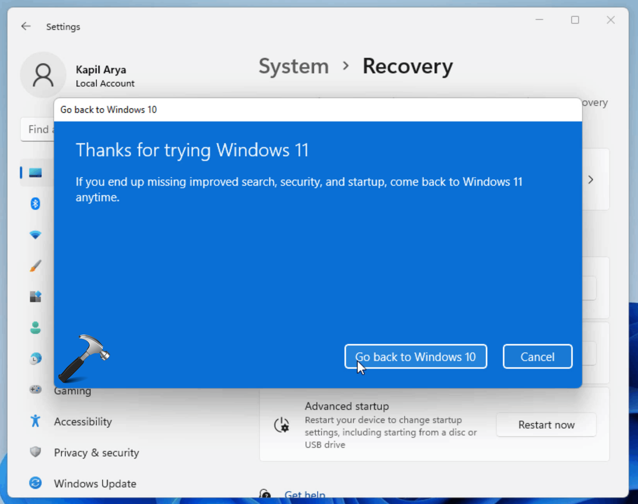 您需要在升级后 10 天内遵循本指南。因为 10 天后,您将无法返回 Windows 10,然后您必须进行干净安装。 Microsoft 仅提供自升级之日起 10 天的降级期限。
