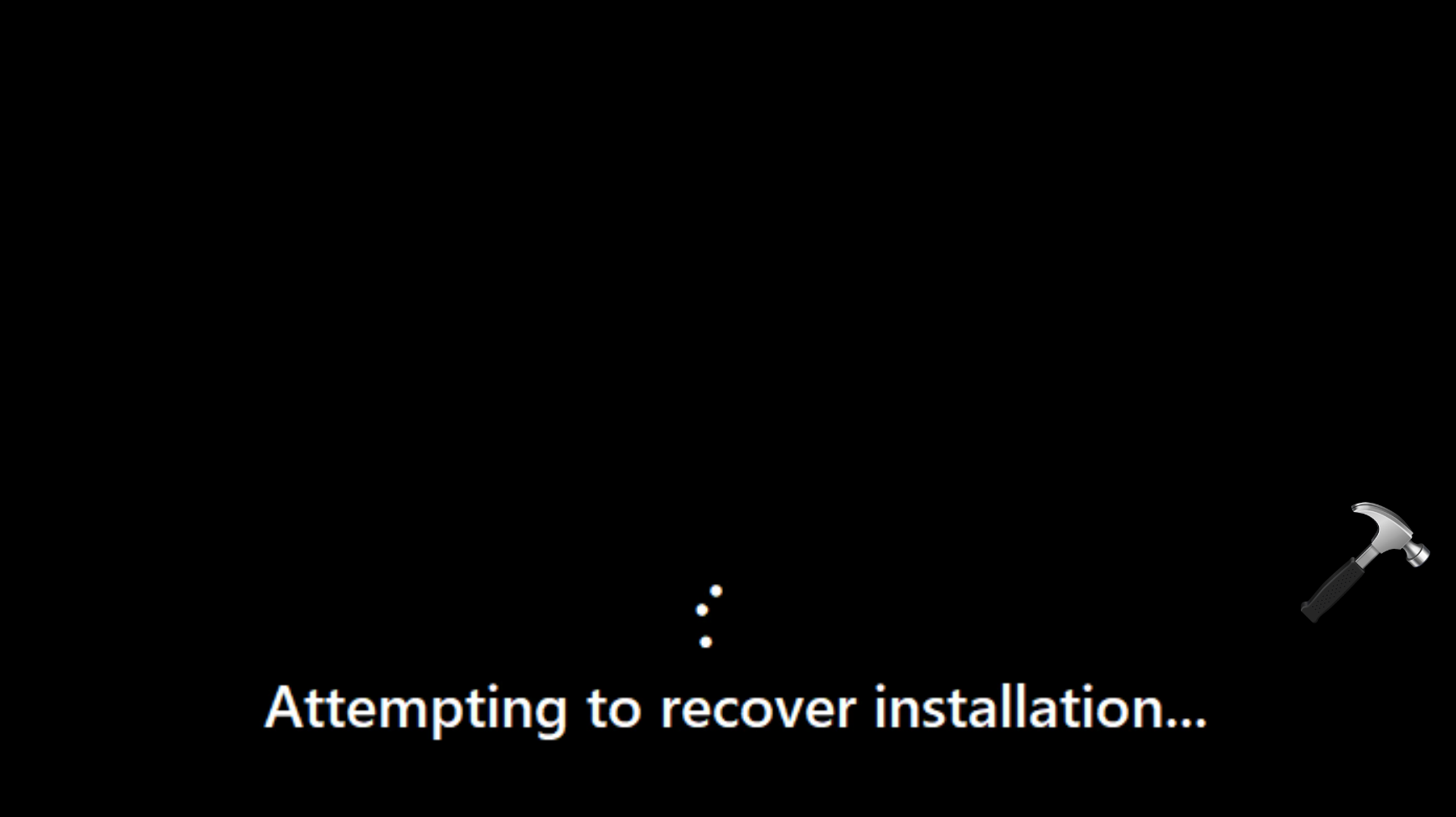 - 一旦完成重新启动过程,它将尝试恢复 Windows 10 安装。这将需要一段时间,因此请耐心等待,让系统正常运行。