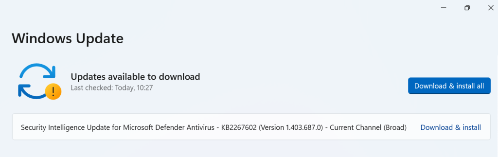 只需按Windows 键和 I 键打开设置>更新与安全>Windows更新然后单击“检查更新。”