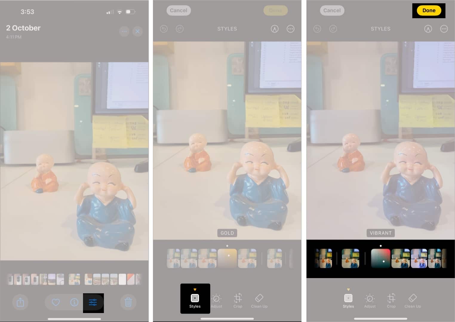 是的,你可以。前往照片应用程序,打开编辑后的照片,点击三点按钮,然后选择恢复至原始状态。