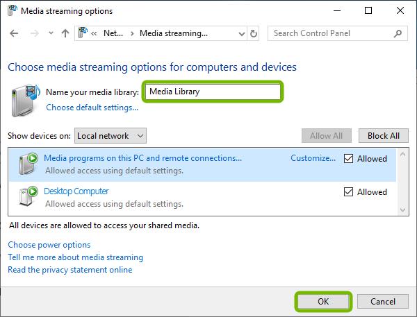 命名网络库,然后添加设备。完成所有步骤后,您的个人文件夹(例如音乐、图片和视频)将对任何支持 UPnP 的流媒体设备可见。