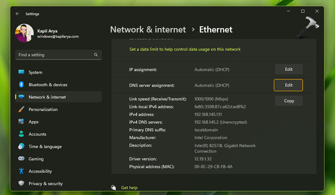 3.在下一页中,单击编辑按钮反对 DNS 服务器分配。