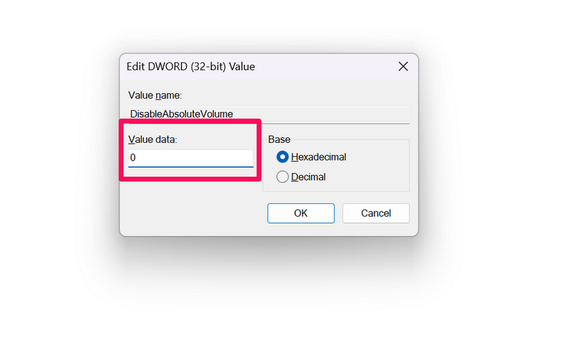 如果您愿意重新启用 PC 或笔记本电脑上的绝对音量之后,您只需按照上述步骤操作即可,更改数值数据的禁用绝对音量钥匙从1到0, 和重新启动你的电脑。