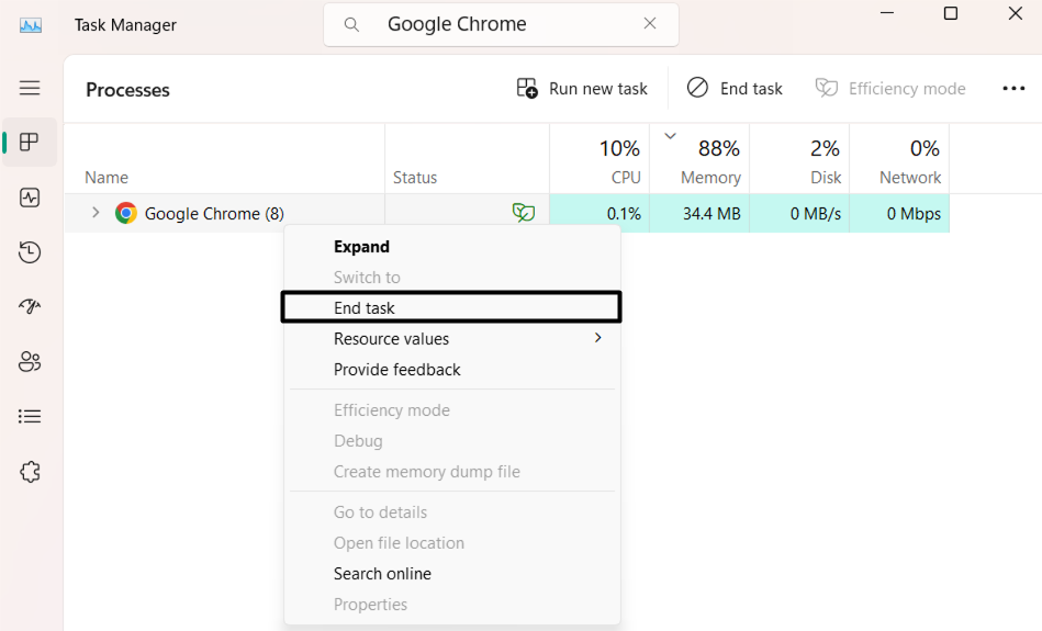 1.使用 Ctrl + Shift + Esc 键盘快捷键打开任务管理器实用程序在您的电脑上。