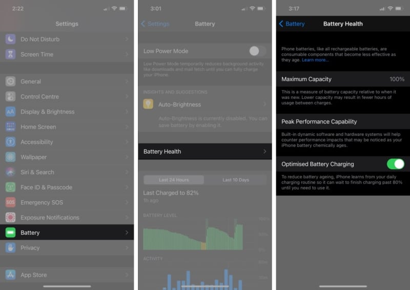 如果 iPhone 的电池百分比指示器显示电池电量充足,但仍然随机关闭,则可能存在电池健康问题。