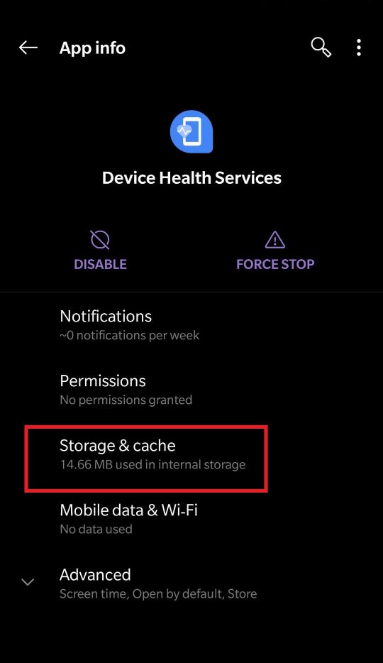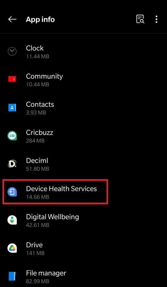 步骤2:点击查看所有应用程序选项并向下滚动并点击设备健康服务.