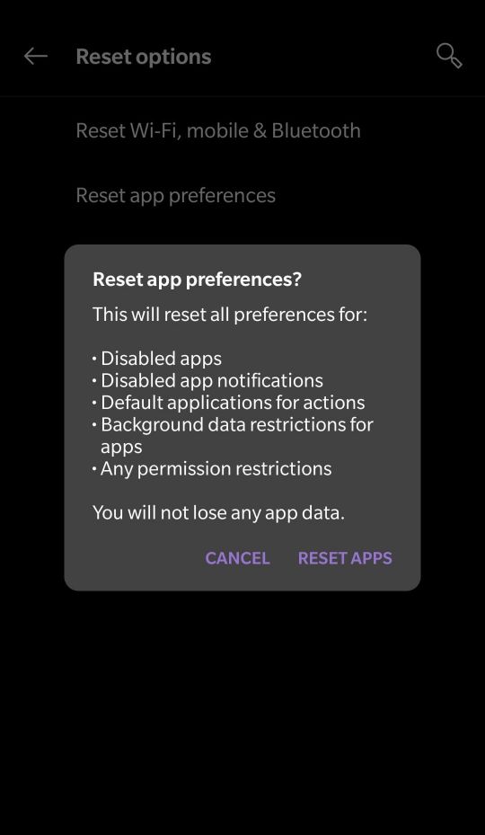 如果您最近更改了任何应用程序的权限或禁用了任何系统应用程序,则可能会出现自适应亮度问题。您可以尝试重置手机上的应用程序选项以重新开始并修复任何潜在问题,作为此问题的解决方案。
