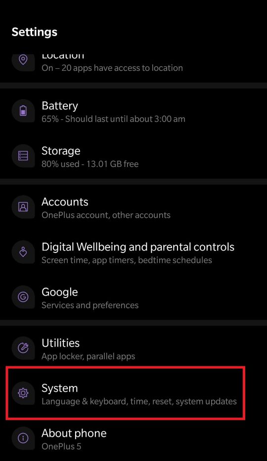 步骤2:向下滚动并点击系统或关于手机。(因设备而异)