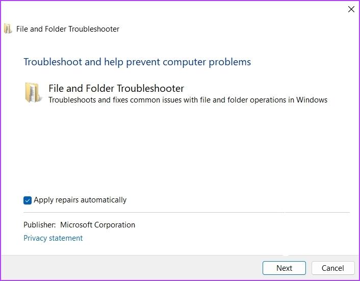 步骤3:按照屏幕上的说明在您的设备上运行文件和文件夹疑难解答。重新启动您的设备并检查错误是否已解决。