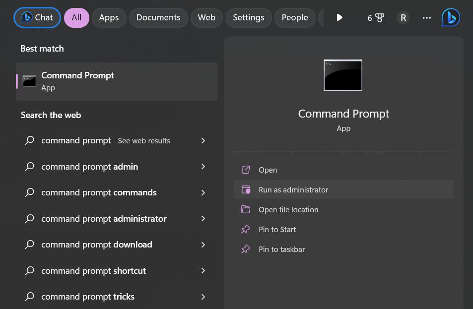 步骤一:点击任务栏上的搜索图标,输入“命令提示符”并选择“以管理员身份运行”。