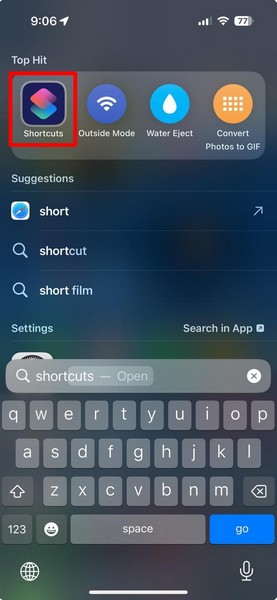 1. 找到快捷方式应用程序在您的 iPhone 上和点击它即可打开.