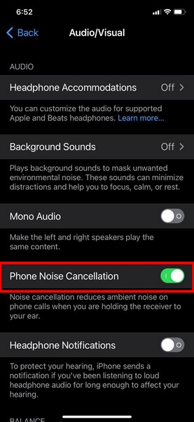 6. 关闭 iPhone 上的手机降噪功能(iPhone 12 或更低版本)