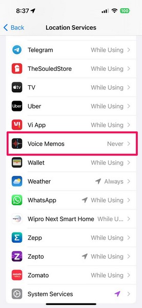 1. 使用之前修复中的步骤 1-4(#修复3) 到打开定位服务设置您设备上的页面。