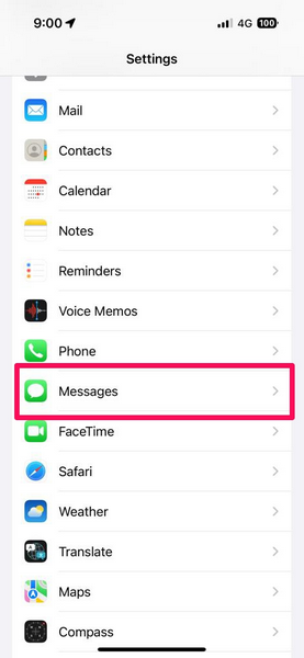 4.现在,返回主设置页面和打开消息设置从列表中。
