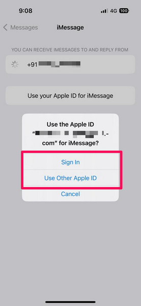 登录过程完成后,您的 iPhone 上的 iCloud 和 iMessage 的 Apple ID 将相同。这样,您就可以在连接到您的主 Apple ID 的 Apple 设备上同步所有消息。