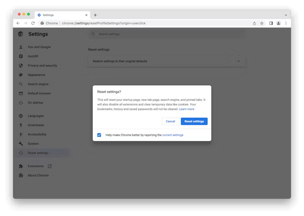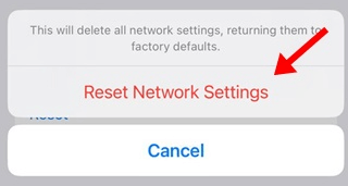 第6步:通过点击确认提示上的重置网络设置来确认操作。