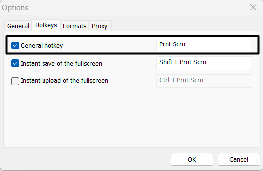4.检查通用热键在 Lightshot 应用程序中