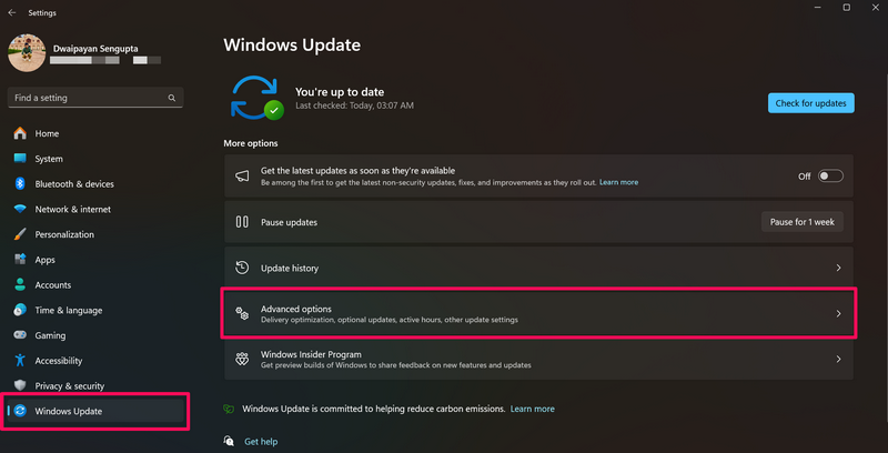 在这种情况下,您可以按照以下步骤检查设备上是否有最新的 Windows 11 更新并立即安装: