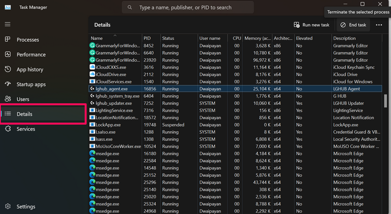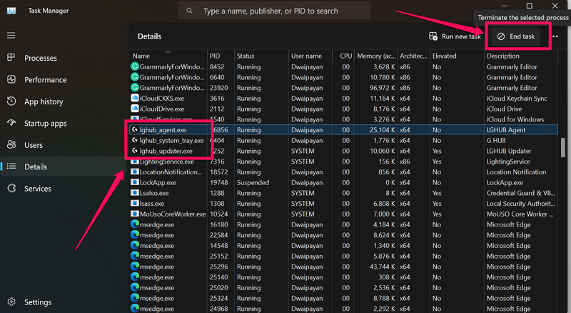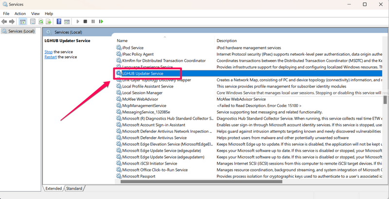 5. 在 Windows 11 PC 或笔记本电脑上重新启动 Logitech G Hub 服务