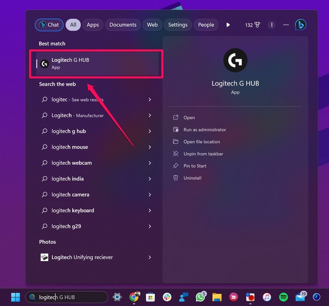 话虽如此,您可以按照以下步骤在 Windows 11 PC 或笔记本电脑上以管理员身份打开 Logitech G Hub 应用程序: